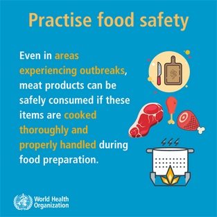 The consumption of raw or undercooked animal products should be avoided. Raw meat, milk or animal organs should be handled with care, to avoid cross-contamination with uncooked foods, as per good food safety practices.